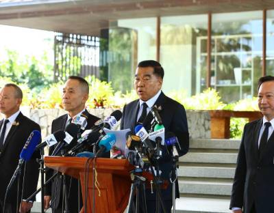 9月10日,塞尔维亚队球员尼古拉·约维奇(左二)与奥格年·多布里奇(左一)在比赛后。新华社记者 吴壮 摄
