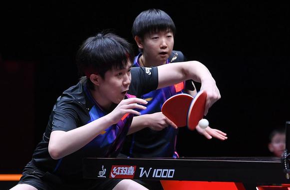 12月10日,王楚钦(左)/孙颖莎在比赛中。新华社记者 陈铎摄