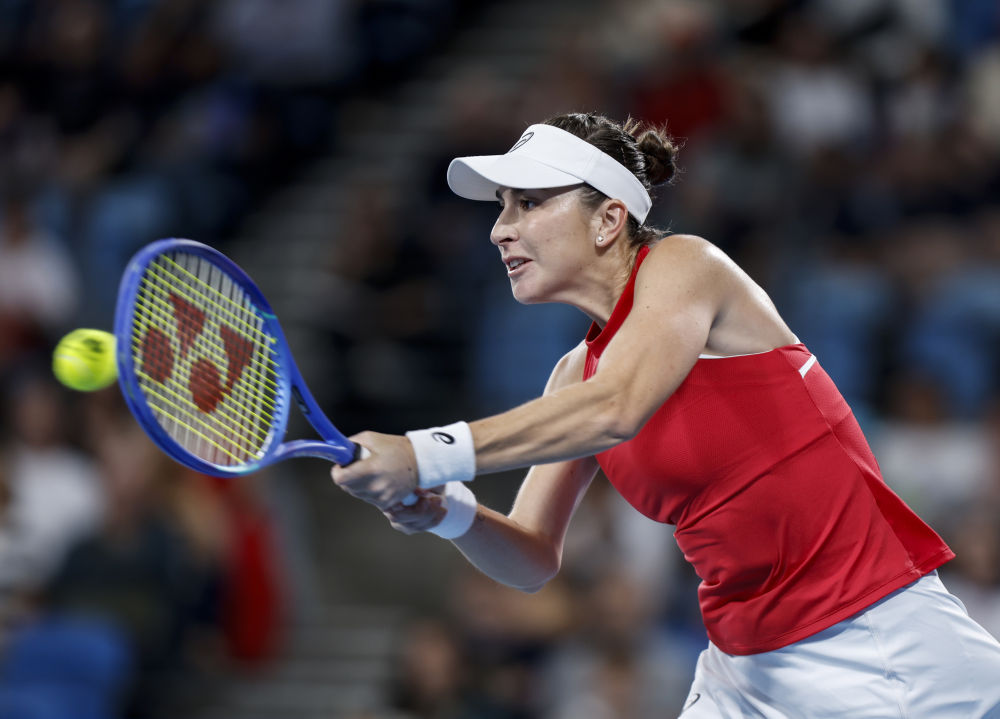 1月11日,瑞士队选手本西奇在比赛中回球。最终,她2:1战胜波兰队选手斯维亚特克。新华社记者 马平 摄