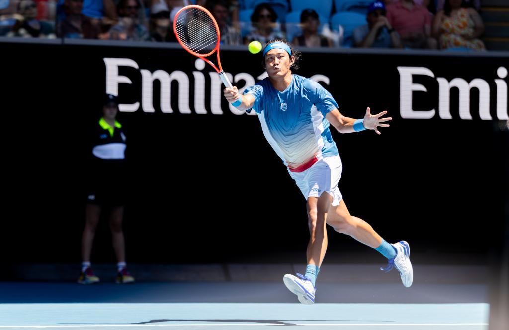 1月18日,张之臻在比赛中回球。新华社发(胡泾辰 摄)
