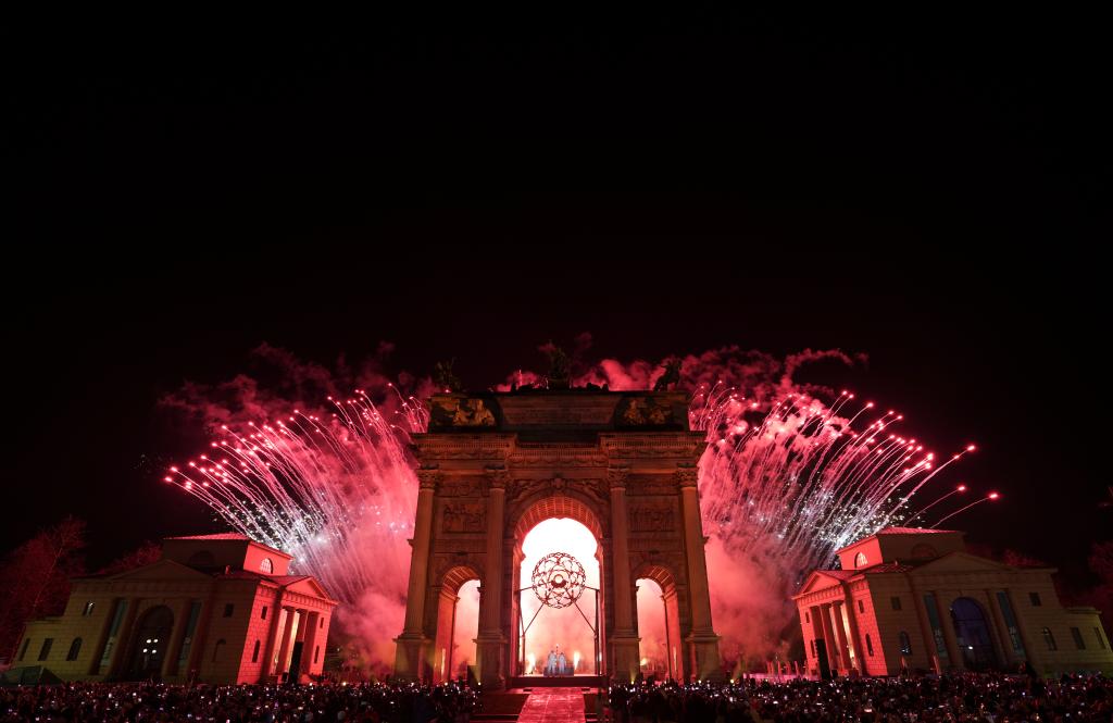 2月6日,在米兰和平拱门,主火炬被点燃。新华社记者 孙非摄