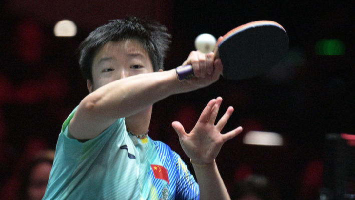 2月25日,孙颖莎在比赛中回球。新华社发(邓智炜摄)