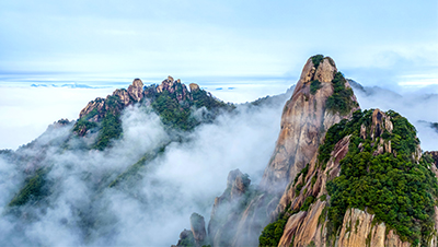 沿途绿意葱茏、云雾缭绕