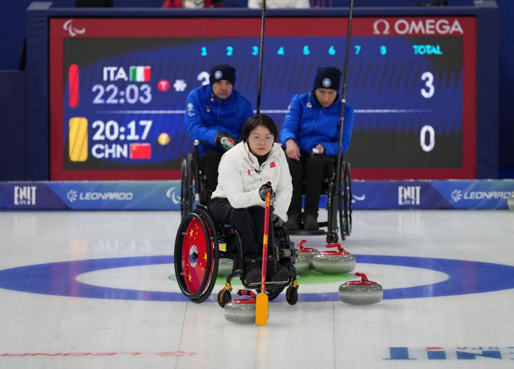 米兰冬残奥会轮椅冰壶混团比赛↑