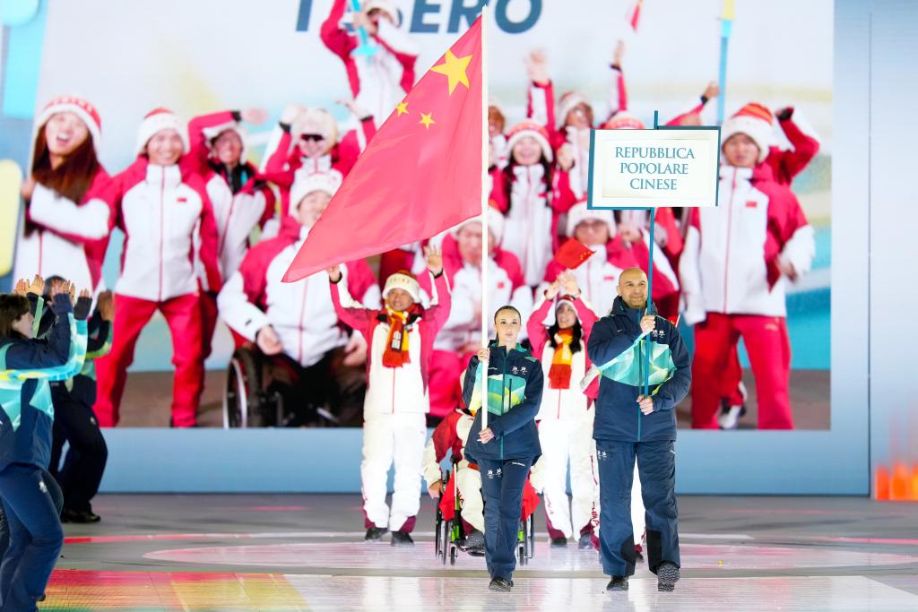 当地时间3月6日,2026年米兰-科尔蒂纳冬残奥会开幕式在意大利维罗纳竞技场举行。图为中国代表团在开幕式上入场。新华社记者李京 摄