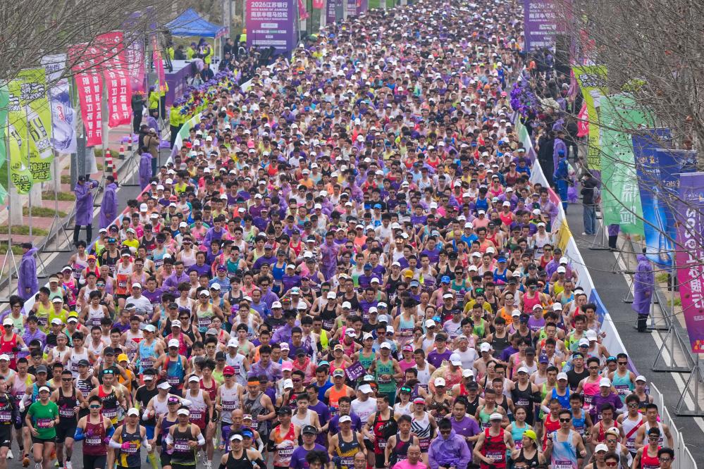 3月22日,2026无锡马拉松在江苏省无锡市滨湖区鸣枪开跑。新华社发(刘臻睿摄)