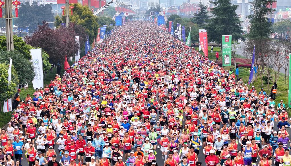 3月15日,2026全国半程马拉松锦标赛暨第九届眉山仁寿半程马拉松·跑遍四川(眉山站)在四川省眉山市仁寿县举行,共吸引国内外2万名选手参赛。新华社发(潘建勇摄)