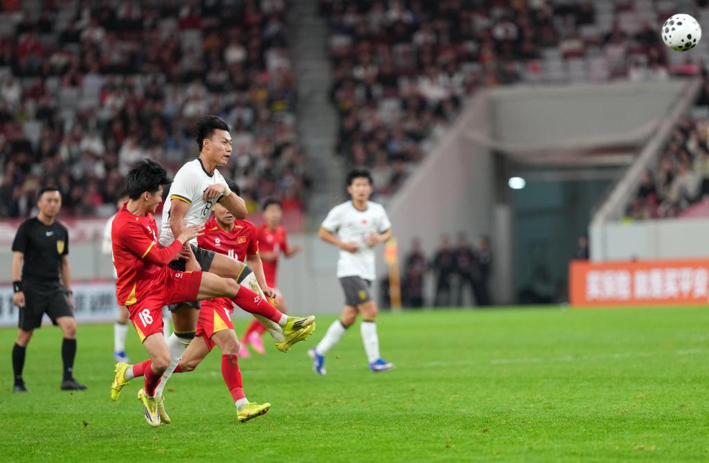 下半场开局阶段,中国队不断从左路发动猛攻,越南队门前一度风声鹤唳。第71分钟,越南队阮邓阳在反击中获得单刀机会,中国队两名后卫及时回追防守成功。