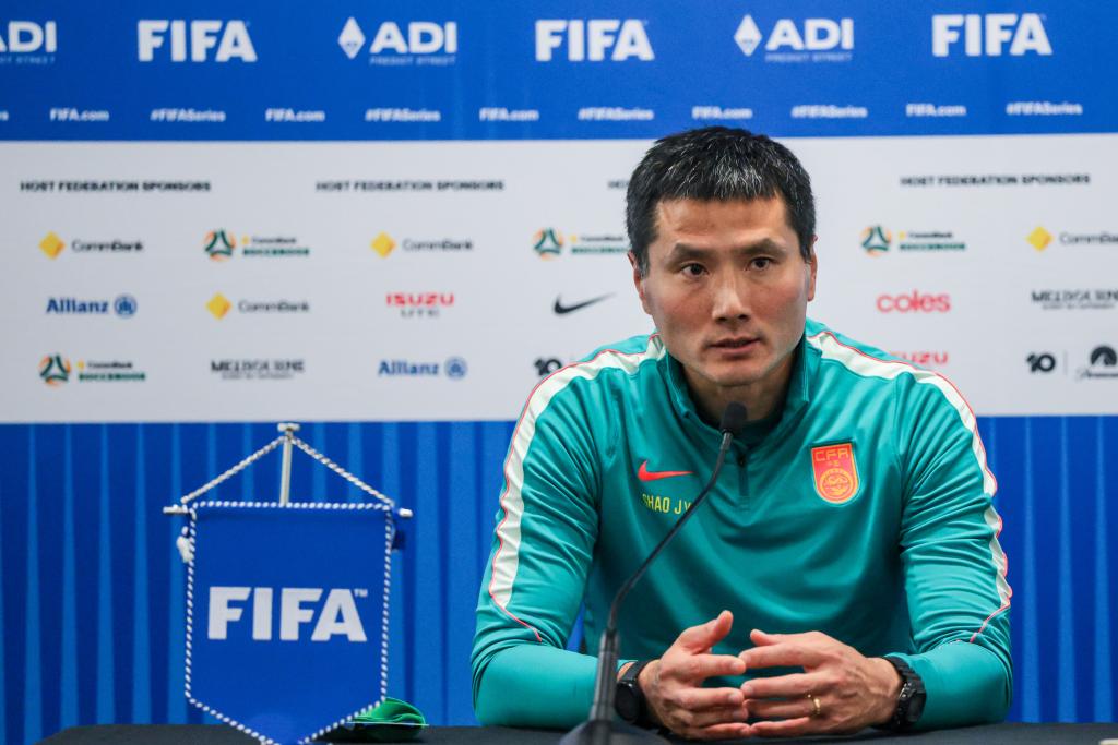 3月31日,中国队主教练邵佳一在赛后新闻发布会上。新华社发(金诚摄)
