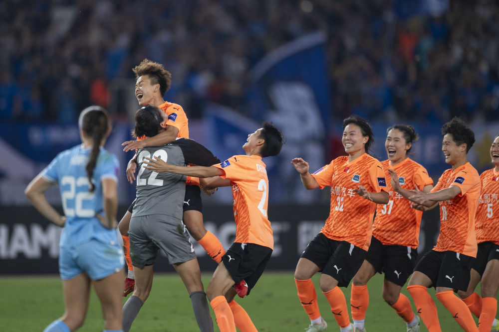 2025年5月24日,武汉车谷江大队球员庆祝胜利。当日,在湖北武汉举行的2024-2025赛季亚足联女足俱乐部冠军联赛决赛中,中国武汉车谷江大队战胜澳大利亚墨尔本城队,夺得冠军。新华社记者伍志尊 摄