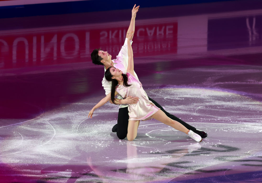 1月25日,中国组合王诗玥/柳鑫宇(后)在北京举行的2026年国际滑联四大洲花样滑冰锦标赛表演滑中。新华社记者 张晨霖摄