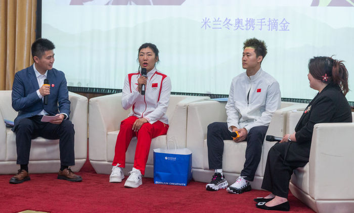 图为徐梦桃(左二)在现场发言