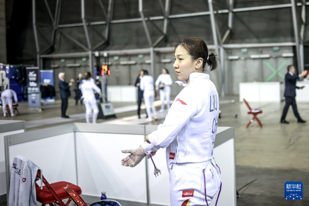 4月17日,中国选手刘畅在女子重剑资格赛上场前。
