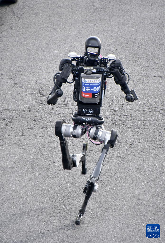 4月19日,北U赛队自主人形机器人选手宇树H1在比赛中。