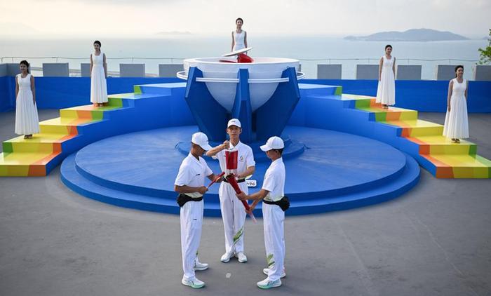 3月30日,第六届亚洲沙滩运动会火种采集仪式在海南三亚举行。新华社记者 蒲晓旭 摄
