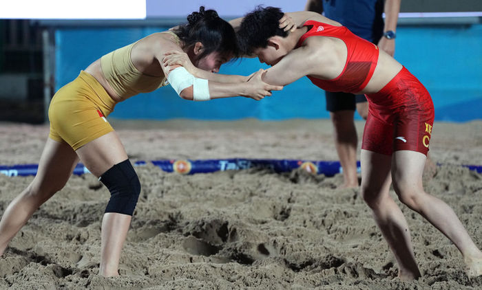 “感觉参赛选手的技战术准备和体能储备都很充分,这激发我要拿出更好的状态。”龙佳说,她和不少队友都是首次参加沙滩摔跤比赛,十分享受比赛过程,期待在决赛中取得好成绩。“这项比赛规则更加简单,适合朋友间三三两两在沙滩上角逐。”她还希望通过沙滩摔跤比赛让更多人接触并喜爱摔跤运动。